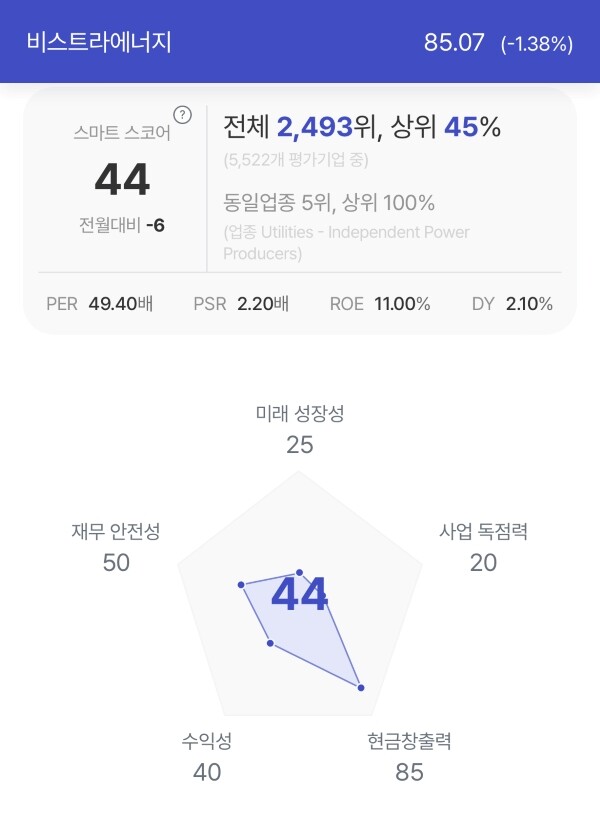 비스트라 주가는 8일(현지시간) 1.4% 하락해 14% 하락한 한 주를 마감했다.