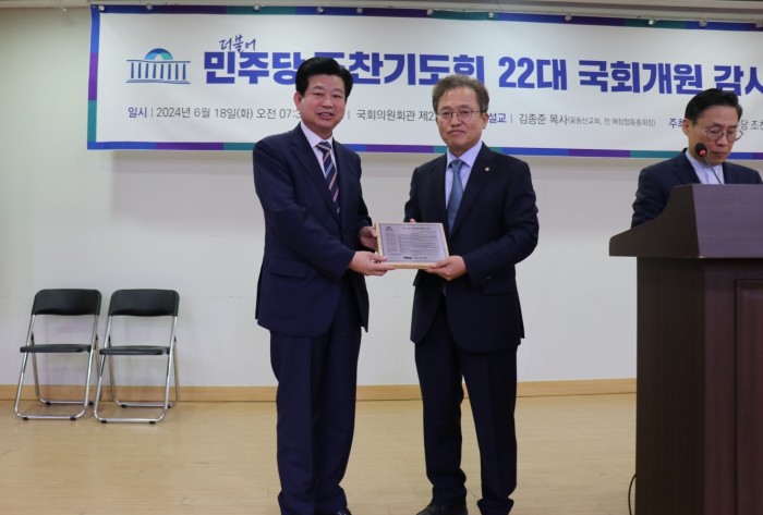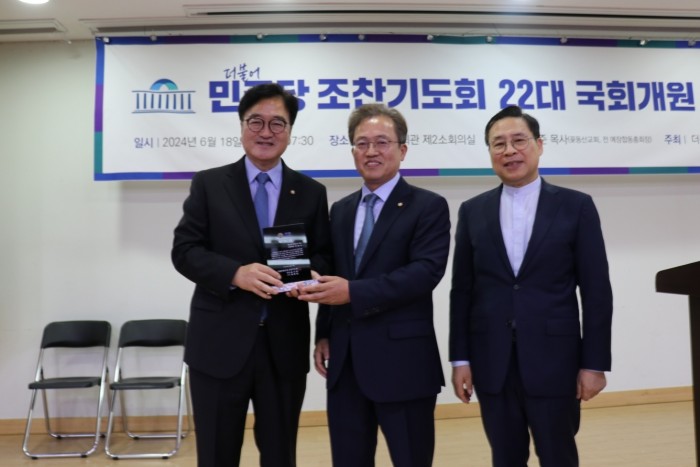 박홍근 민주당 의원은 대표기도를 맡았고 허종식(더불어민주당 조찬기도회 부회장), 박균택(더불어민주당 조찬기도회 총무) 민주당 의원은 특별 기도에서 각각 ‘한반도 평화와 국가 발전’ ‘22대 국회’를 위한 기도 제목을 나눴다.
