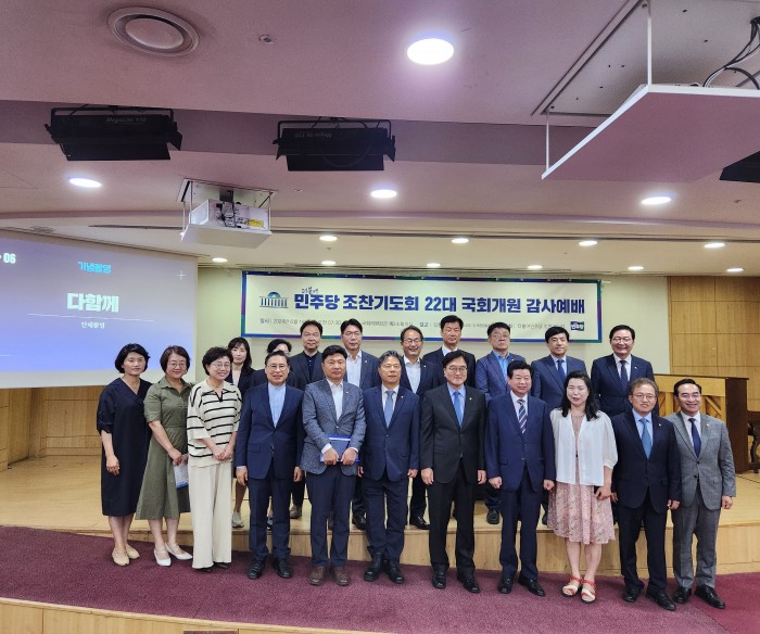 감사예배에 조승래 의원, 이재관 의원, 안태준 의원, 서영석 의원, 염태영 의원, 이성윤 의원 등이 참석했다.