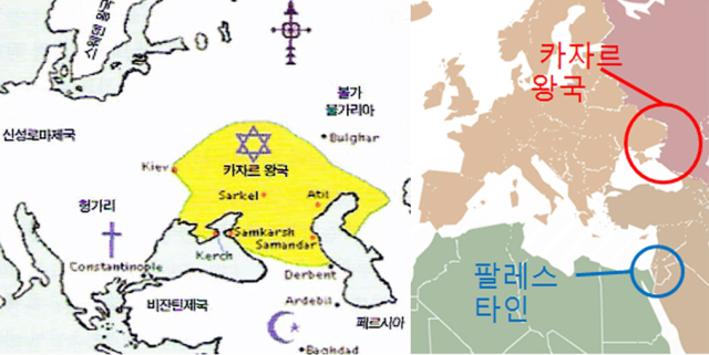 쾨슬러는 전문 역사학자는 아니지만, 바로 앞에 소개한 프랑스 역사학자 에르네스트 르낭과 미 역사학자 살로 배런 등의 연구 결과물들을 독자들이 읽기 쉽게 잘 정리해냈다. 이 책에 따르면, △유대인 인구의 75%를 차지하는 아쉬케나짐 유대인은 8세기 카자르 왕국을 세웠던 터키(돌궐족)계 카자르인의 후손들이고, △아쉬케나짐의 뿌리가 지금의 우크라이나를 포함해 카스피해로 이어지는 지금의 러시아 남부 지역이라는 것이다. 쾨슬러는 당시 카자르 왕국의 상황을 이렇게 풀이했다.
