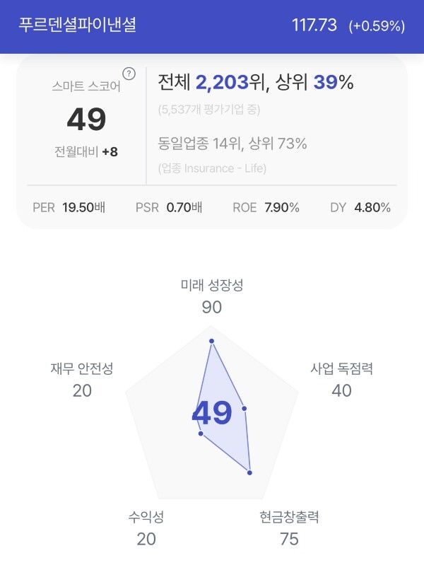 현재 푸르덴셜 주가는 117.73달러에 거래되고 있다.