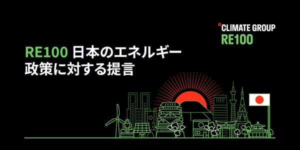 클라이밋그룹 RE100 캠페인 '일본 재생에너지 정책 권고안' 상단 그래픽 이미지. RE100 일본의 에너지 정책에 대한 제언이라고 적혀 있다. <클라이밋그룹>