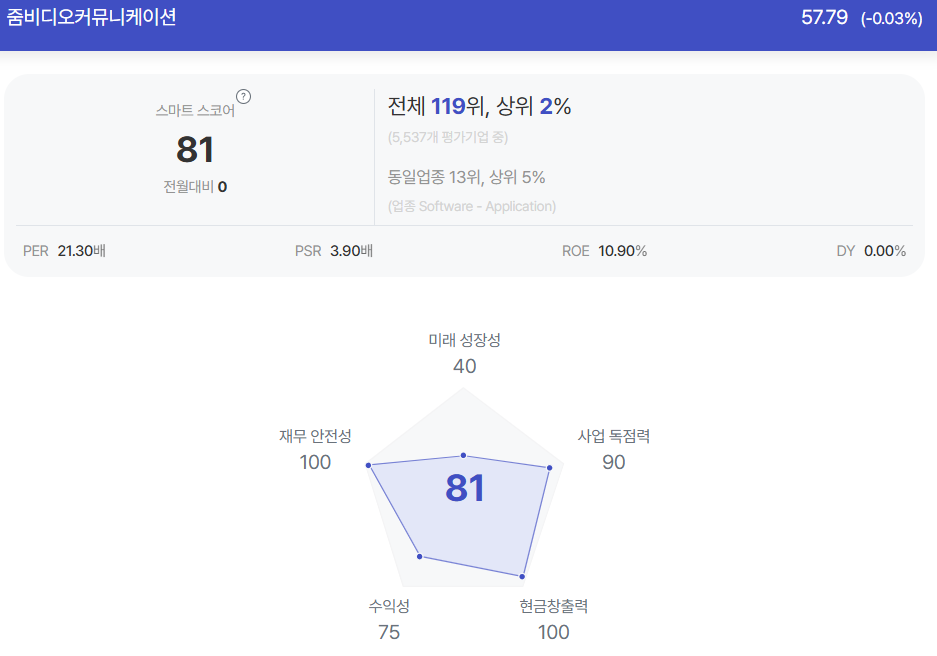 줌은 코로나19 이후 비디오 컨퍼런스 콜 부문에서 압도적인 인지도를 확보한 기업이다. 비디오 컨콜에서 선두 지위를 유지하기 위해 기술 혁신에 대한 투자를 늘려나가고 있으며, 신규 성장 동력 확보를 위해 Phone과 Contact Center 사업에도 진출했다.