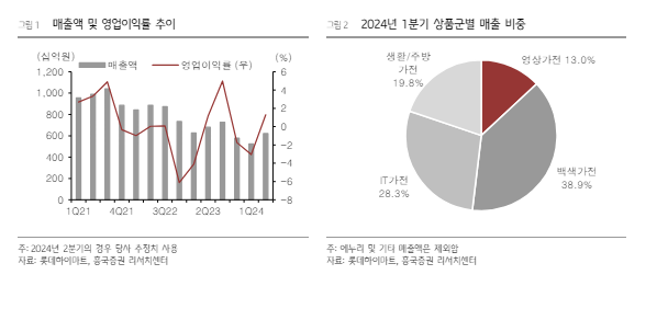 흥국증권에 따르면, 롯데하이마트의 2분기 별도기준 매출액은 6201억 원으로 전년 대비8.8% 감소하고 영업이익은 81억 원으로 3.4% 증가하며 전분기에 이어 견조한 실적 회복세가 지속될 것으로 추정된다.