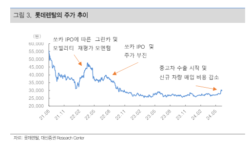 "롯데렌탈, 중고차 매각 단가 상승..하반기에 실적 개선 전망"