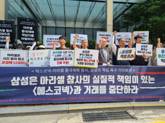 "삼성, ‘참사 가해기업’ 아리셀 모회사 에스코넥과 거래 끊어야"
