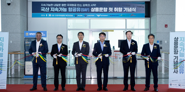 대한항공은 30일 오전 인천국제공항 제2터미널에서 '지속가능항공유 상용 운항 취항 행사'를 열었다.