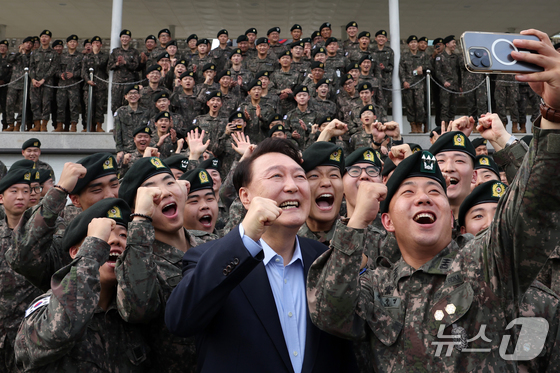 아울러 "국군통수권자로서 여러분이 정말 자랑스럽고 여러분을 무한히 신뢰한다"며 "걱정 없이 임무에 전념할 수 있도록 근무 여건을 개선하고 여러분이 입고 있는 군복이 자랑스럽게 느껴지도록 국군통수권자로서 최선을 다해 지원하겠다"고 약속했다.
