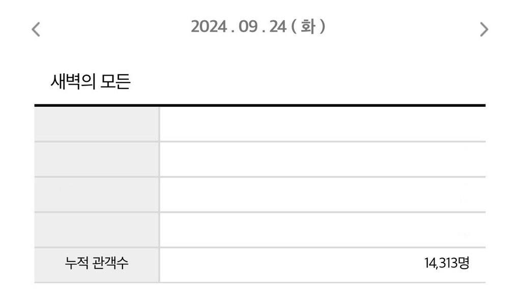 영화관입장권 통합전산망에 따르면 ‘새벽의 모든’이 개봉 7일 만에 누적 관객수 14,313명(24일 오전 9시 30분 기준)을 돌파했다.