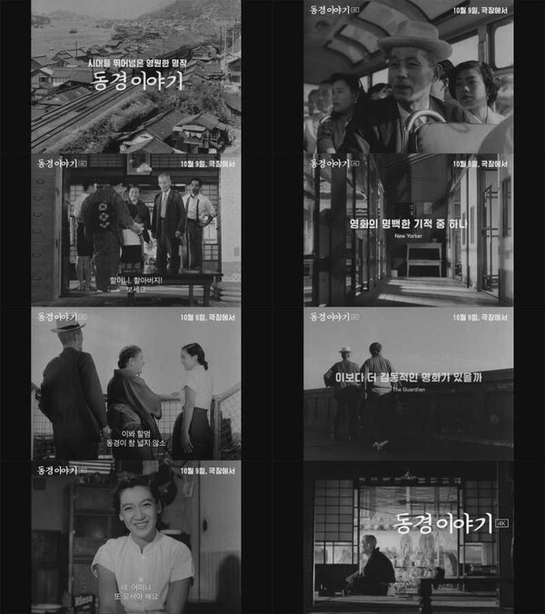이번에 공개된 리마스터링 예고편은 자식들을 만나기 위해 동경으로 떠날 준비를 하는 노부부의 모습을 보여주며 시작한다. 오랜만에 동경에서 함께 모인 가족들은 서로를 반갑게 맞이하지만, 바쁜 도시 생활에 익숙해진 자식들은 부모에게 온전한 시간을 내어주지 못한다.