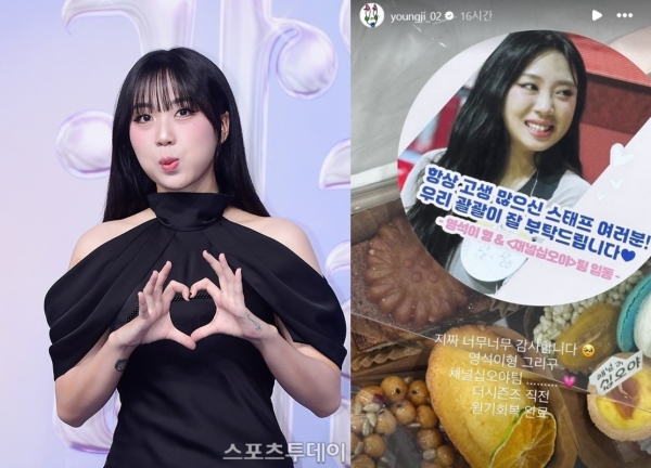 사진에는 나영석PD와 '채널 십오야' 팀이 이영지와 KBS2 '더 시즌즈' 팀을 위해 보낸 간식이 담겼다. 과자와 빵 위로 '항상 고생 많으신 스태프 여러분 우리 괄괄이 잘 부탁드립니다 - 영석이형 '채널 십오야' 팀 일동'이라는 문구가 적혀 있다.