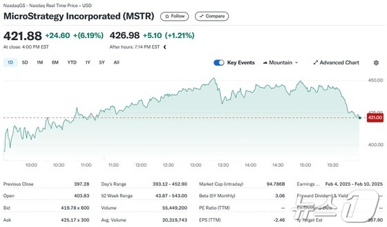 이는 이날도 비트코인이 9만9655달러까지 치솟는 등 연일 랠리하고 있기 때문으로 풀이된다.