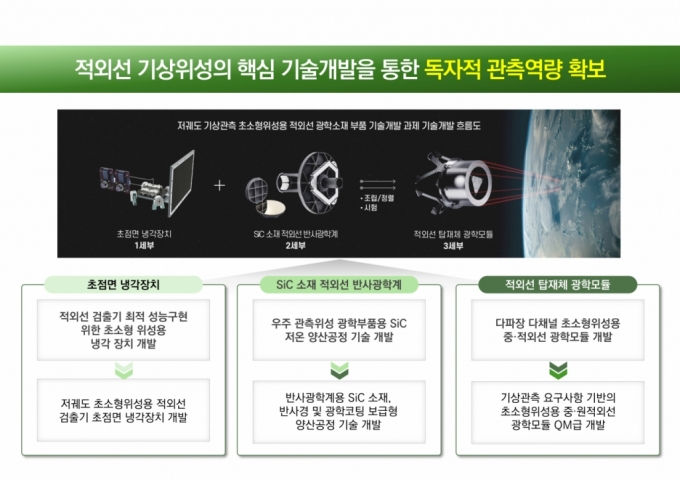저궤도 기상관측 초소형위성용 적외선 광학 소재부품기술 개발 사업 목표 및 체계도 /사진제공=텔레픽스 타액만으로 멍냥이 건강관리… 포옹, 스트레스 지수 검사 출시"기후위기 기술로 해결"…기후테크 데모데이서 1등 차지한 기술동남아 3개국 간병·돌봄 전문인력 국내로…케어닥, 추가 협약체결맛과 건강 모두 챙기는 대체식품 '널담', 미국 시장 공략 본격화경기혁신센터, 오픈이노베이션으로 스타트업에 날개 달다