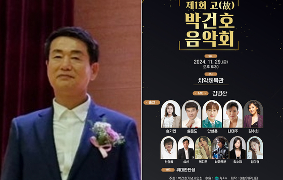 오는 29일 원주시 치악체육관에서 열리는 '제1회 박건호 음악회'에는 송가인을 비롯하여 설운도, 전영록, 안성훈, 김수희, 심신, 남궁옥분, 임수정, 나태주, 정다경, 복지은 등 국내 최고의 가수들이 한자리에 모인다.