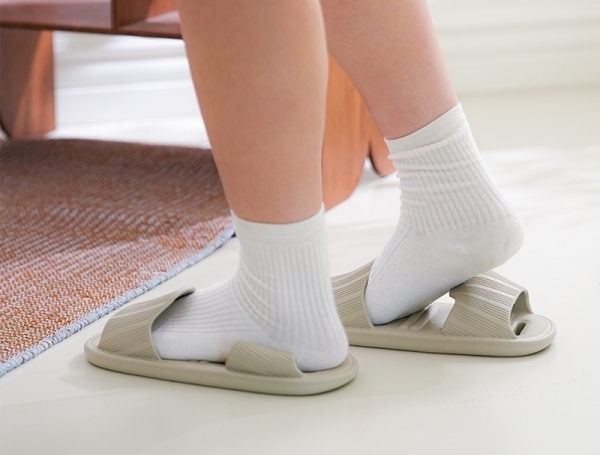 앞, 뒤 구분 없이 양면으로 신을 수 있으면서 가볍고 유연한 소재로 안 신은 듯한 느낌을 준다. 발코니, 욕실은 물론 거실에서도 사용할 수 있는 편한 착화감을 자랑한다.