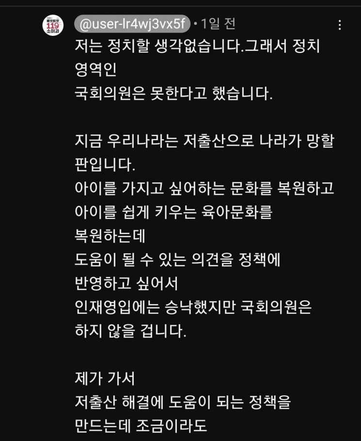 또 "제가 가서 저출산 해결에 도움이 되는 정책을 만드는 데 조금이라도 도움이 될 수 있다면 좋겠다"며 "그리고 저는 정치인이 아니므로 정치적인 일은 하지 않을 생각이다. 부모들께서 아이를 키우는데 조금이라도 더 도움이 될 이야기를 하는 것이 제 꿈"이라고 밝혔다. 하 원장은 앞으로도 정치인이 되긴 힘들 것 같다며 소아과 의사로서 활동할 것이라는 말로 글을 맺었다.