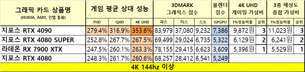 4k 144hz 모니터로 aaa 게임을 하겠다는 분들에게 추천 드리는 라인업 입니다. 곧 5090 5080 출시 인데 사면 바보 입니다.