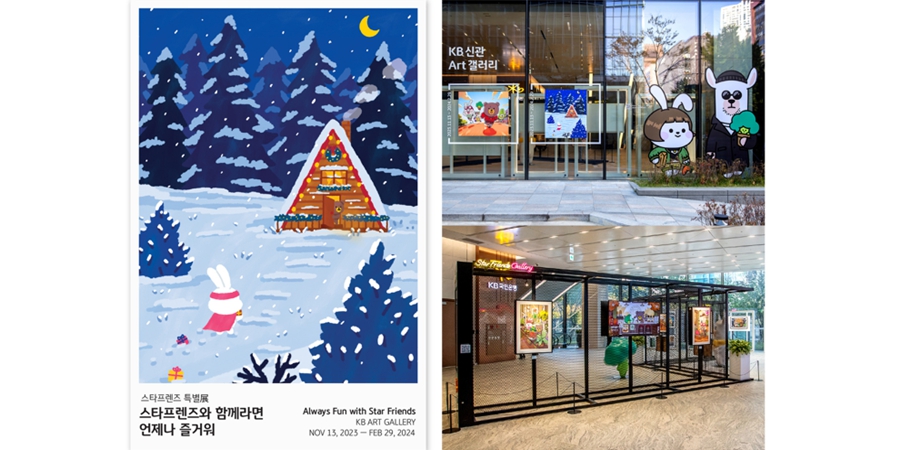 KB금융은 내년 2월29일까지 본관 1층과 샛강역 등에서 미술품 전시회 '스타프렌즈와 함께라면 언제나 즐거워'를 연다. < KB금융그룹 >