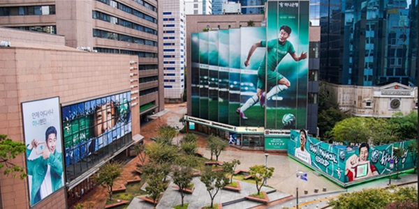 하나금융은 명동 본사 뒤편에 거대한 손흥민 그래피티 월을 조성했다.