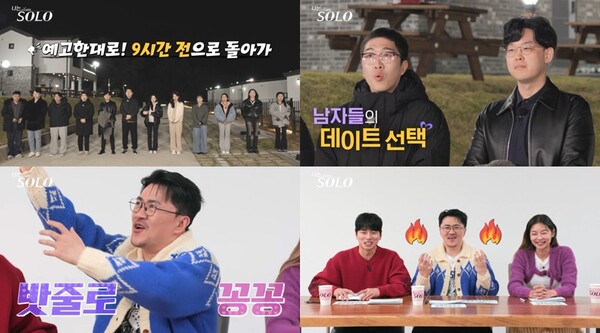 22일(오늘) 밤 10시 30분 방송하는 ENA와 SBS Plus의 리얼 데이팅 프로그램 ‘나는 SOLO’에서는 ‘랜덤 데이트’를 마치고 시간을 9시간 전으로 돌려 솔로남들의 진심을 확인한 ‘솔로나라 24번지’의 반전 상황이 공개된다.