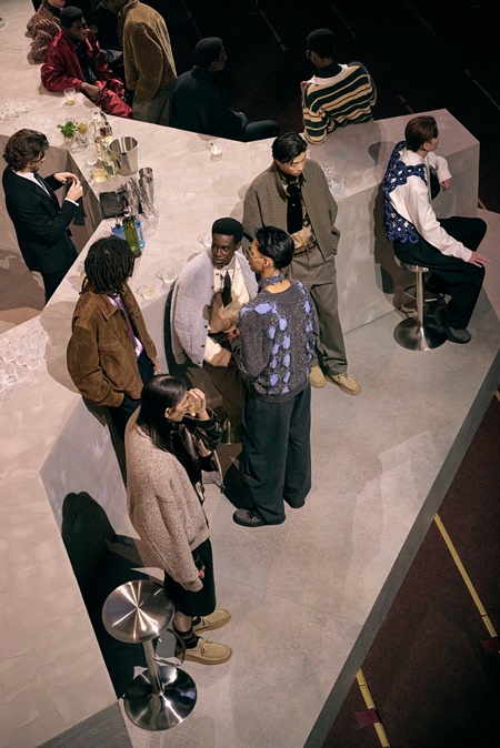 이번 컬렉션은 카지노 드 파리스의 객석 중앙에 기하학적 구조가 돋보이는 모던한 바를 설치하고 라이브 재즈밴드 섭외해 과감한 무대를 구성했다. 금요일 저녁 퇴근 후 재즈바에서 시간을 보내는 도시 남성의 모습을 연출해 극적 전환의 순간을 담아냈다.