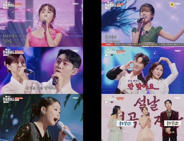 ‘껌딱지 자매’ 김다현과 빈예서, ‘한일 힐링 듀오’ 린과 아키는 ‘설 특선 듀엣 대결’에 앞서 애정 배틀을 펼쳤다. 빈예서가 “사실 외동이라 외로웠는데 언니가 생긴 것 같아요”라며 김다현에 대한 껌딱지 애정을 고백했고, 이에 질세라 린은 타지에서 고생하는 동생 아키를 위해 뒤꽂이 비녀를 선물해 훈훈함을 자아냈다.