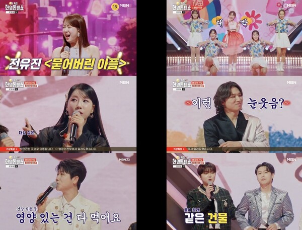 전유진, 이세진(린), 손태진이 ‘찐찐찐 대결’로 최강 3파전을 벌였다. 전유진은 린과 손태진을 롤모델로 뽑았고, 손태진이 가진 춤 열정을 칭찬해 현장을 들썩였다. 손태진의 춤 선생으로 지목되며 깨알 댄스를 보여줬던 린은 ‘일자상서’가 시작되자 독보적인 무대로 황홀한 귀호강을 선사했고, 전유진은 ‘바람의 소원’으로 감성을 촉촉하게 채우는 무대를 꾸며 박수 세례를 받았다.