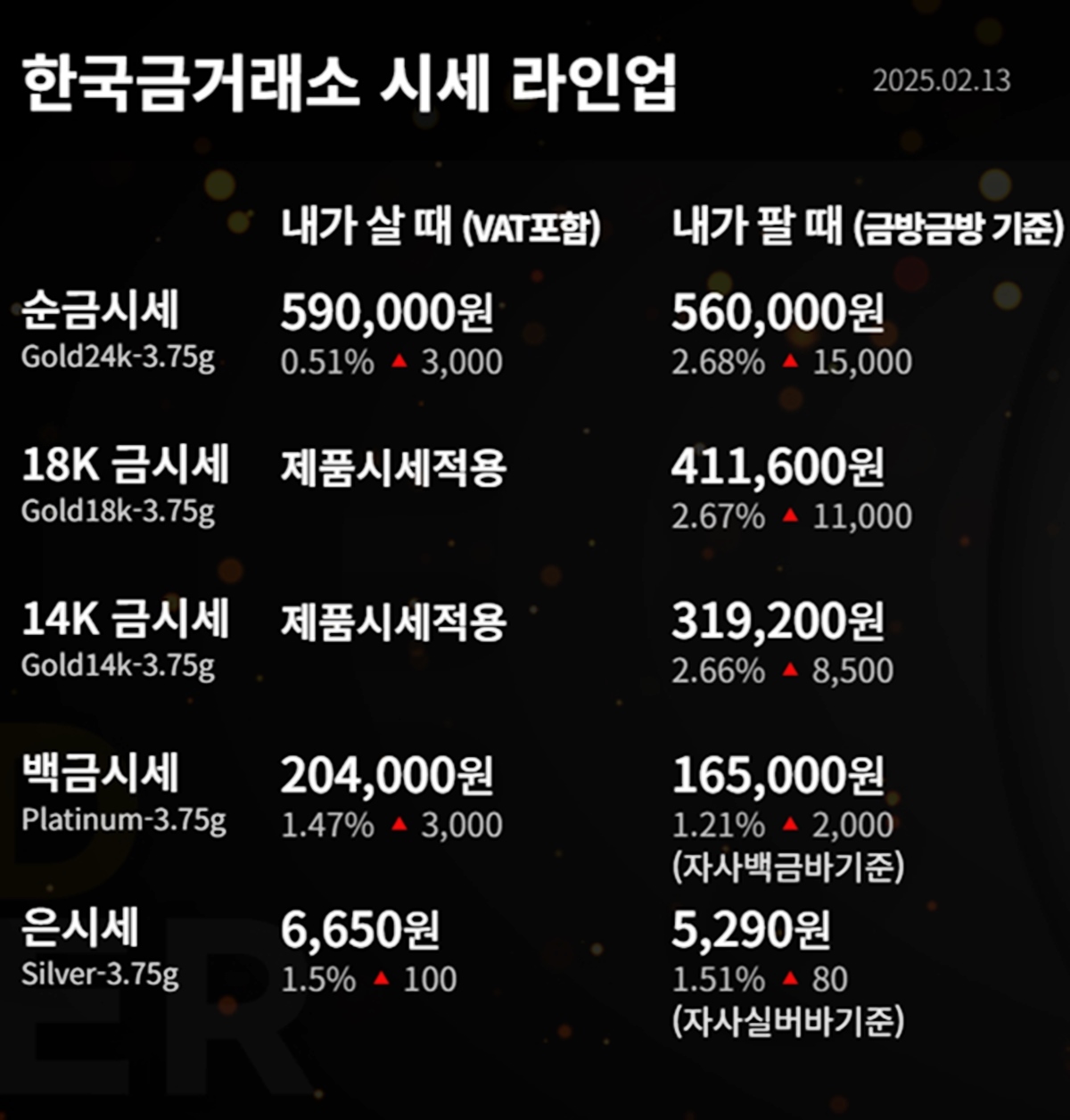 순금(24K) : 매입가 59만 원 / 매도가 57만 5000원