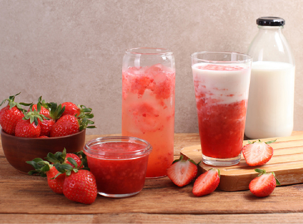 딸기는 다양한 방법으로 디저트에 활용되는데, 붉디붉은 '딸기청'이 대표적인 예다.