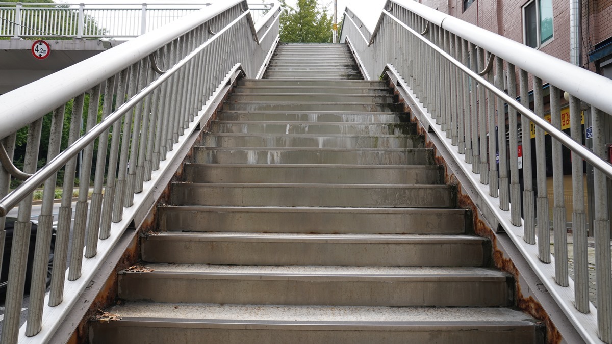 육교에서의 낙상 사고가 빈번히 발생하고 있다. 특히 비나 눈이 내린 후에는 미끄러운 바닥 때문에 사고가 더 자주 일어난다.