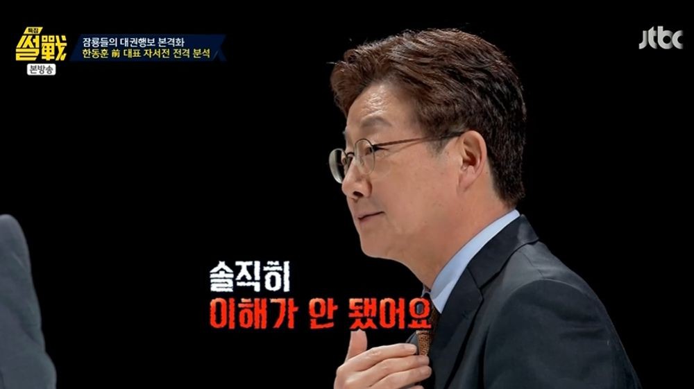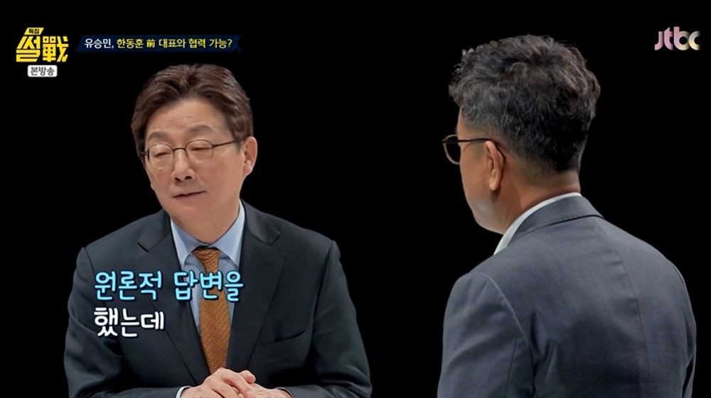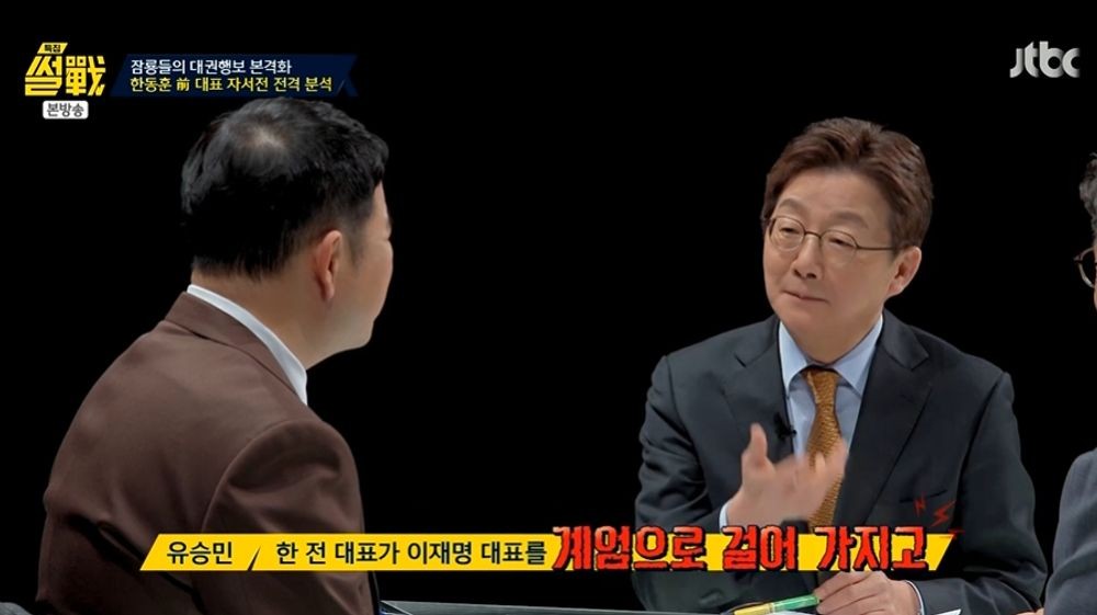 이에 유승민은 "사자성어 쓰는 걸 안 좋아하는데, 그런 걸 '이전투구'라고 한다"면서 "한 전 대표가 이재명 대표를 계엄으로 걸어서 디스하는 건 솔직히 이해 안 됐다"고 밝혔다. 그는 "12월 3일 밤 비상계엄 해제하는 날, 한 전 대표가 국회의원이 아닌데 본회의장에 들어가지 않았냐. 이재명 대표와 약속하고 협력해서 계엄을 해제하지 않았냐. 근데 '저 사람이 집권하면 계엄할 거다'라고 하니까 이재명 대표 입장에선 '어디 가서 뺨 맞고 분풀이하냐'고 생각할지도 모르겠다"고 전했다.
