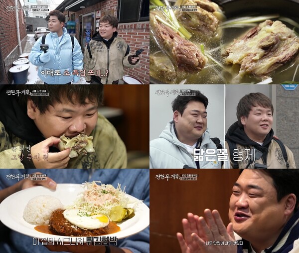 14일(금) 방송된 본격 리얼 길바닥 먹큐멘터리 ‘전현무계획2’ 21회에서는 전현무-곽튜브(곽준빈)가 ‘국민 먹깨비’ 김준현과 만나 ‘전현무 픽’ 영등포 꼬리곰탕 맛집부터 ‘곽튜브 픽’ 잠실 튀김 함박 식당, ‘김준현 픽’ 소고기집을 클리어하는 먹트립이 펼쳐졌다.