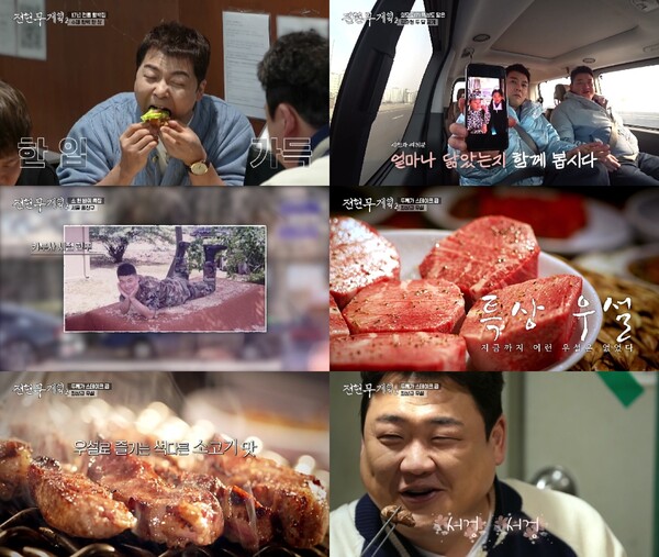 우설에 이어 한우 부챗살 주물럭이 나오자 김준현이 손수 집게를 들었다. 그는 ‘먹교수’의 노하우를 담아 주물럭을 구웠고 이를 맛본 전현무-곽튜브는 ‘엄지 척’을 했다. 이에 질세라 전현무도 자신만의 ‘굽철학’을 설파하며 고기를 구웠다. 김준현 역시 전현무가 구은 고기에 인정의 박수를 보냈다.