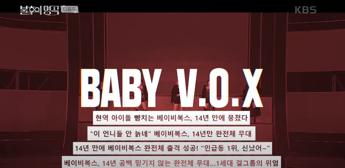 한편 베이비복스는 14년 만에 완전체로 ‘불후의 명곡’ 출연 소식을 전하며 화제를 모았다. ‘아티스트 베이비복스 편’은 15일 오후 6시 5분 KBS 2TV에서 방송된다.