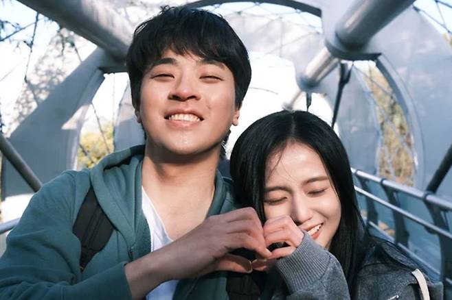 쿠팡플레이에서 공개된 '뉴토피아'에서 캠퍼스 커플 연기를 펼쳐 화제를 모은 박정민, 지수의 커플 사진이 다수 공개됐습니다.
