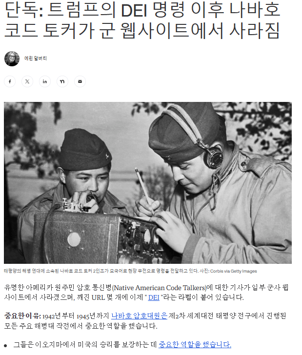 미군 사이트서 백인 남자 빼고 소수인종, 여성 관련 각종 언급이 삭제되고 있는 중