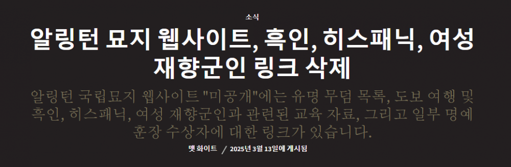 한국으로 따지면 국립현충원인 알링턴 묘지 사이트에서 흑인, 히스패닉, 여성 군인등에 관한 공개자료 삭제