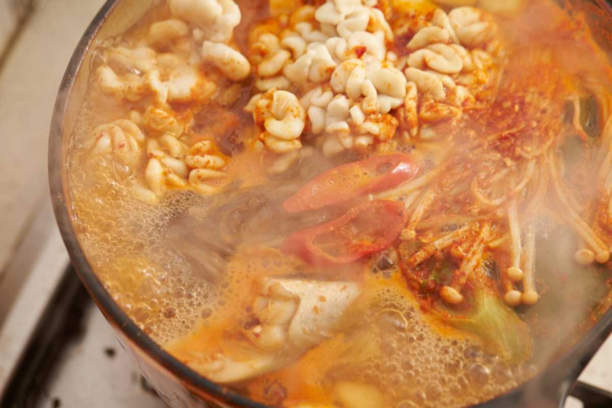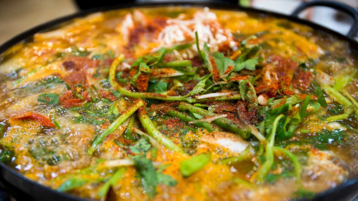 한국에서 매운탕이나 해물탕을 먹을 때 흔히 볼 수 있는 재료가 있다.