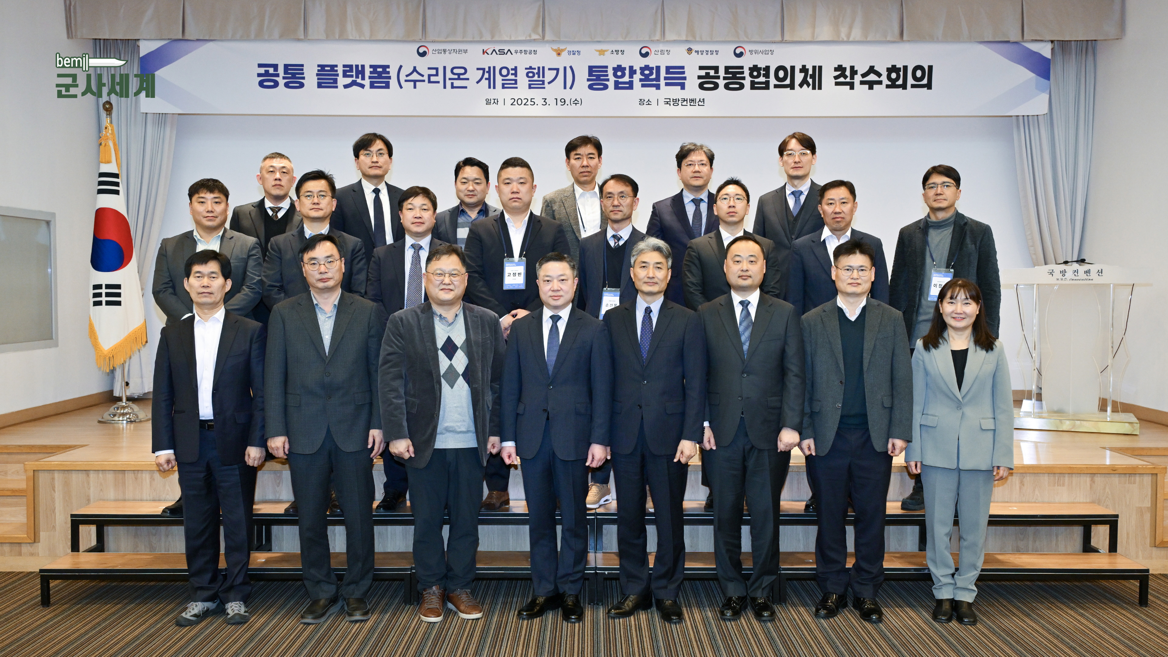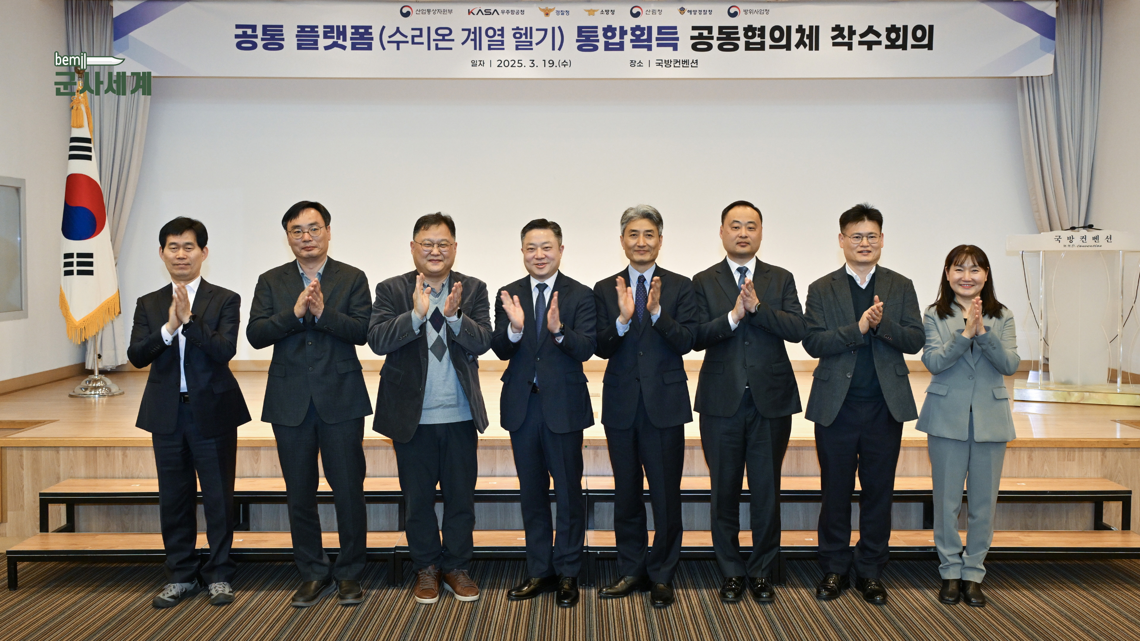 방위사업청(청장 석종건), 산업통상자원부, 우주항공청, 경찰청, 소방청, 산림청, 해양경찰청 7개 부처는 3월 19일(수) 서울 국방컨벤션에서 최초 국산헬기인 수리온의 향후 발전방안을 논의하는 실장급 범정부 공동협의체 착수회의를 개최했습니다.
