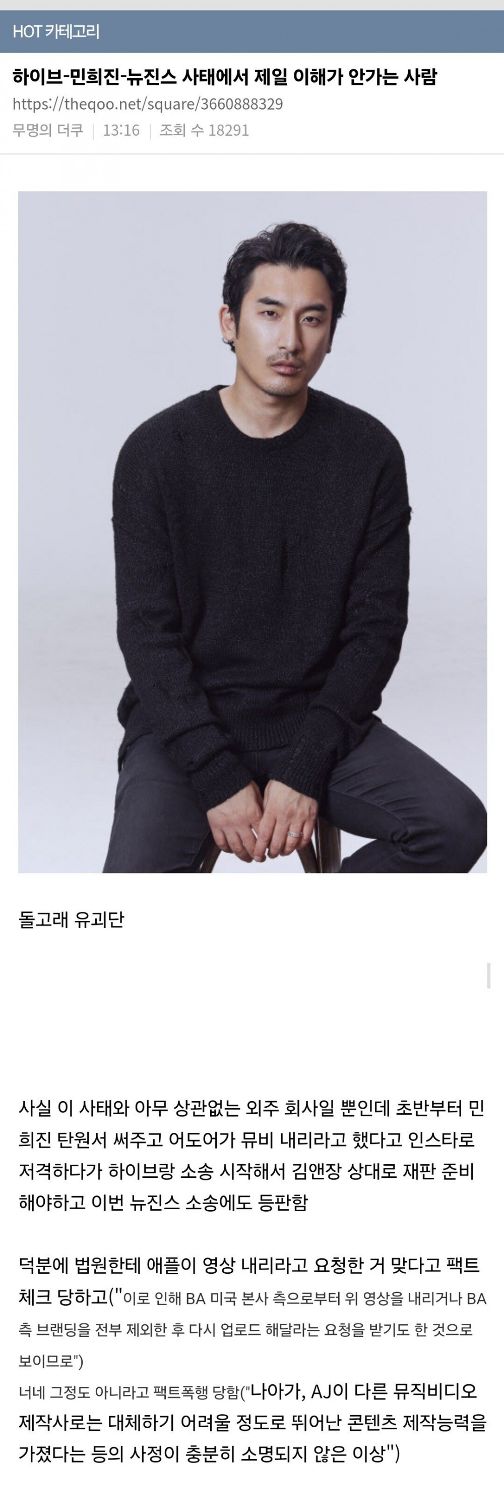 「사건요약」1. 돌고래유괴단 채널에 ETA 뮤비 감독판 공개 예고 (ETA 뮤비는 애플 광고로 쓰임)2. 갑자기 신우석이 인스스 올리며 어도어 압력으로 내렸다고 폭로3. 어도어 해명 : 광고주 측에서 문제제기했고, 뉴진스 IP 또한 어도어 소유이기 때문에 내리라고 한 것4. 신우석 반격 : 김주영 취임 전의 어도어와 애플, 그리고 돌고래 3사가 사전에 협의했던 내용이었다고 밝히며 명예훼손으로 어도어 고소그리고 이번 가처분 결정문 내용(3) 채권자와 X 뮤직비디오 제작사인 AJ 사이에 체결된 용역위탁계약서에 의하면, 위 계약 이행시 산출되는 산출물에 대한 소유권 및 지식재산권은 채권자에게 귀속되고(제9조 제2항), AJ은 위 계약을 통해 제작된 산출물을 채권자의 사전 서면동의 없이 온라인 매체에 유포하거나 게시할 수 없다(제10조 제2항). 그럼에도 AJ은 2024. 8. 31.경 채권자의 사전 서면동의 없이 X의 '「영상명」' 영상을 AJ이 운영하는 유튜브에 게시하였고, 이로 인해 BA 미국 본사 측으로부터 위 영상을 내리거나 BA 측 브랜딩을 전부 제외한 후 다시 업로드 해달라는 요청을 받기도 한 것으로 보이므로, 채권자가 위 용역위탁계약을 위반한 AJ을 상대로 법적 조치를 취한 것은 위 용역위탁계약에 따른 권리행사라 볼 수 있고, 이러한 사정만으로 채권자가 이 사건 전속계약상의 중요한 의무를 위반했다고 보기는 어렵다. 나아가, AJ이 다른 뮤직비디오 제작사로는 대체하기 어려울 정도로 뛰어난 콘텐츠 제작능력을 가졌다는 등의 사정이 충분히 소명되지 않은 이상, 단순히 채권자와 이 사건 전속계약의 당사자도 아닌 AJ 사이에 분쟁이 있었다는 사실만으로 채권자가 이 사건 전속계약상의 중요한 의무를 위반했다고 보기도 어렵다. 채권자 : 어도어 X : ETA AJ : 돌고래유괴단