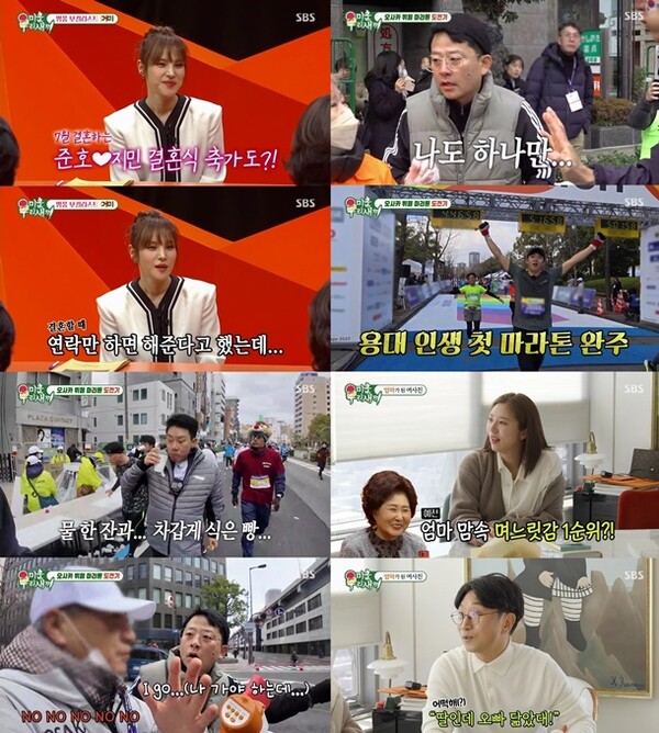 김준호, 이상민, 이용대의 ‘오사카 마라톤 도전기’ 2탄이 공개됐다. 구간마다 제공하는 다양한 간식들로 화제가 되는 ‘뷔페 마라톤’ 콘셉트에 놀란 세 사람. 그러나 정해진 시간 안에 구간을 통과하지 못하면 탈락하는 룰에 스튜디오에서는 걱정의 목소리가 나왔다.