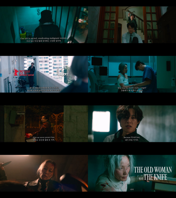 공개된 인터내셔널 예고편은 “우리 일은 악성 벌레 퇴치하는 신성한 일이야” 라는 ‘조각’(이혜영)의 내레이션을 시작으로, 레전드 킬러 ‘조각’과 미스터리한 신입 킬러 ‘투우’(김성철)가 방역 업무를 수행하는 모습을 담아냈다. 이어 등장하는 제75회 베를린국제영화제와 제43회 브뤼셀 판타스틱 영화제 공식 초청 로고는 ‘파과’가 전 세계에서 주목받고 있음을 보여준다.