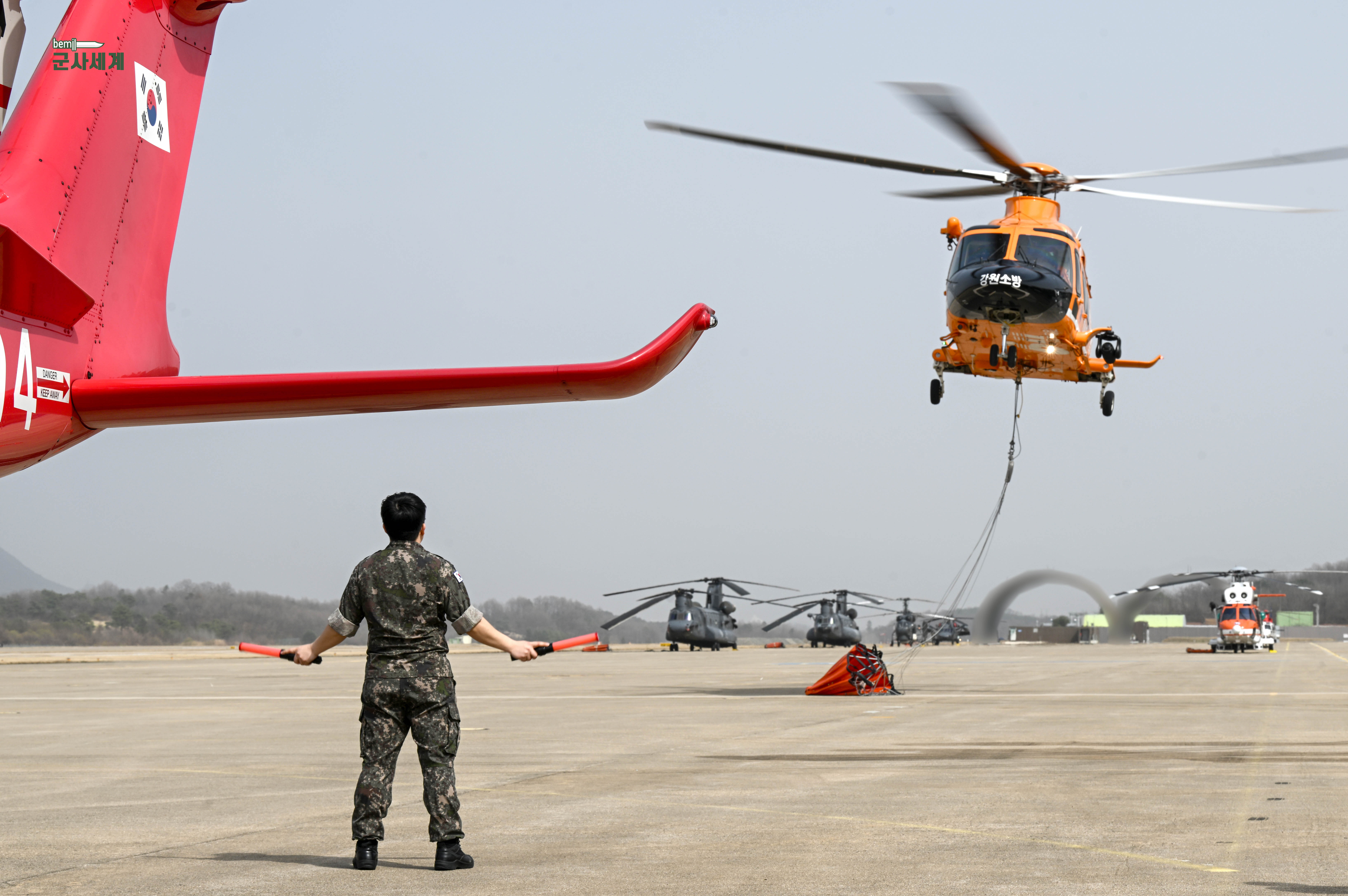 CH-47 헬기는 한 번에 최대 5천 리터의 물을, HH-32는 최대 3천 리터의 물을 뿌릴 수 있다. 이 헬기들은 진화임무 후 인근 하천이나 저수지에서 물을 다시 담을 수 있어 시간당 3회 이상 임무가 가능하다.