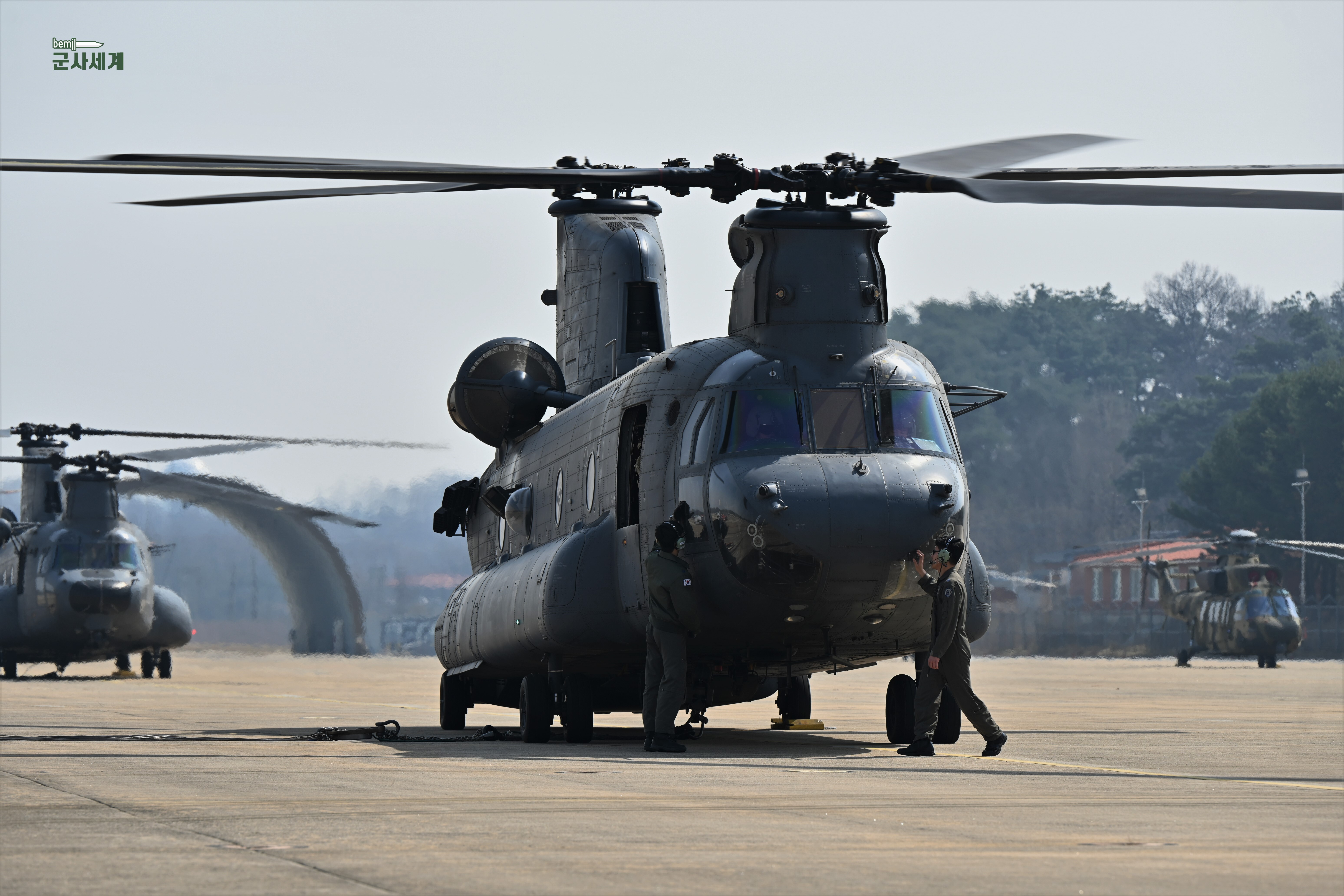 2) 공군 CH-47 헬기가 6전대 이륙을 준비하고 있다.