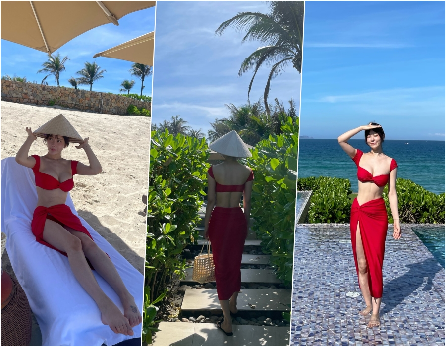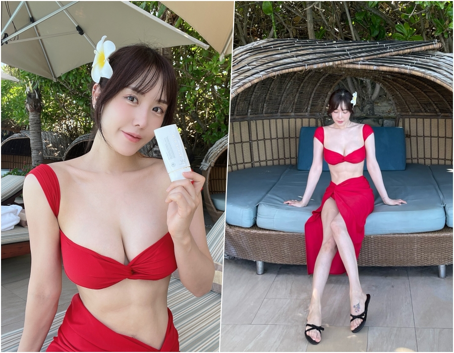 사진 속 이소라는 강렬한 레드 컬러 비키니 톱과 랩 스커트를 입은 모습으로, 그는 넘칠 듯한 볼륨감을 자랑하고 있어 시선을 사로잡는다.