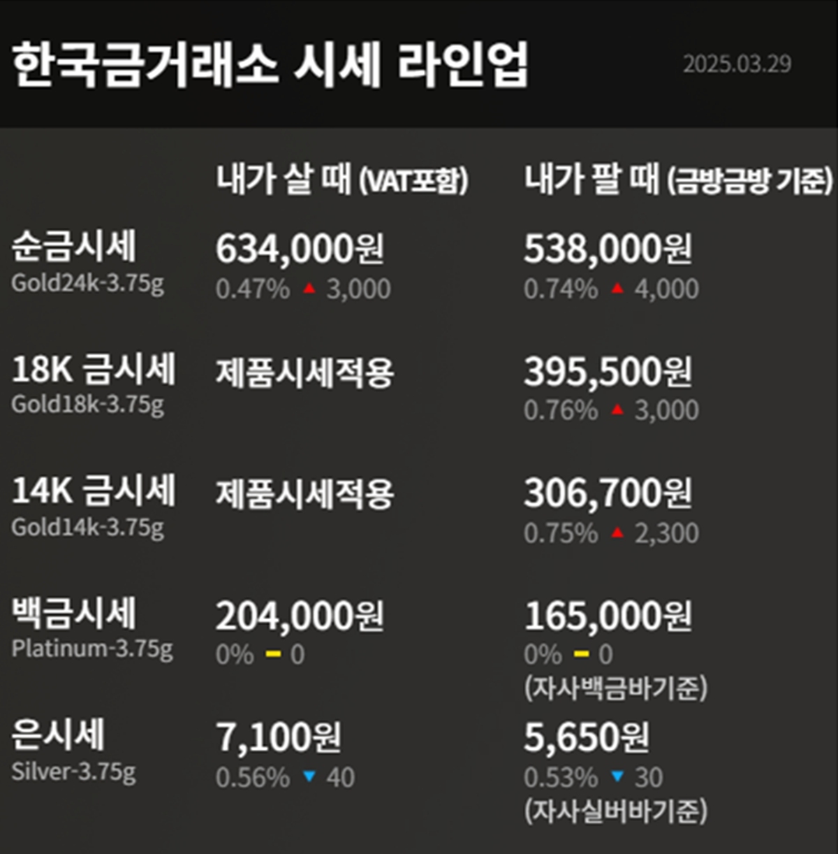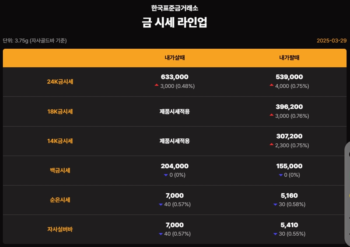 순금(24K) : 매입가 63만 4000원 / 매도가 53만 8000원