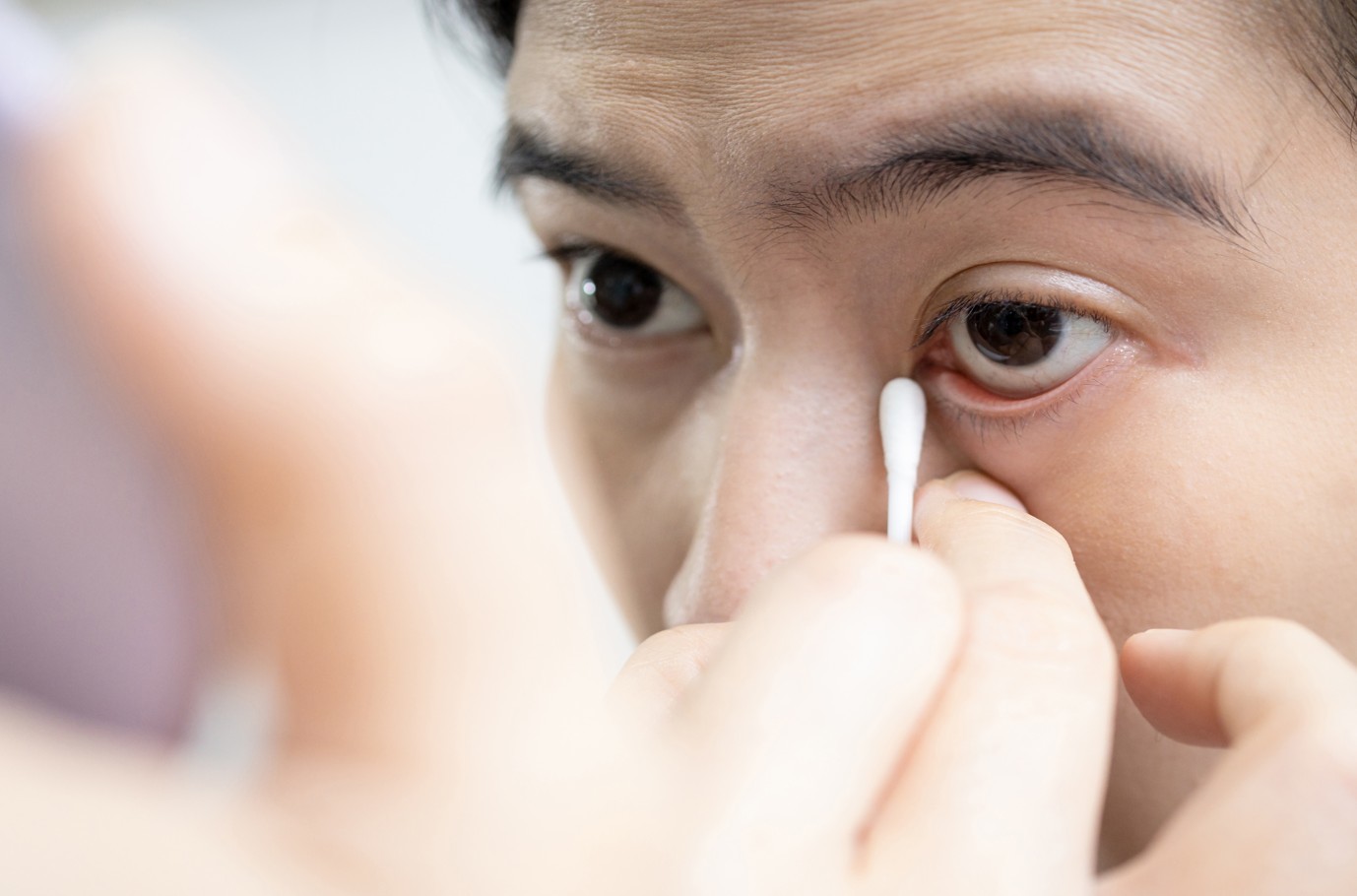 눈 주변에는 미세먼지, 피지, 화장 잔여물 등이 쉽게 쌓인다. 이로 인해 눈동자가 탁해 보이거나 염증이 생기기도 한다. 일주일에 1~3회 눈꺼풀 세정을 습관화하는 것이 좋다. 먼저 깨끗한 면봉으로 눈꺼풀 위를 위에서 아래로 가볍게 눌러준다. 또는 온찜질을 30분 이상 해도 좋다. 그리고 세정제나 멸균 식염수를 적신 면봉으로 속눈썹 라인을 따라 부드럽게 닦아준다.