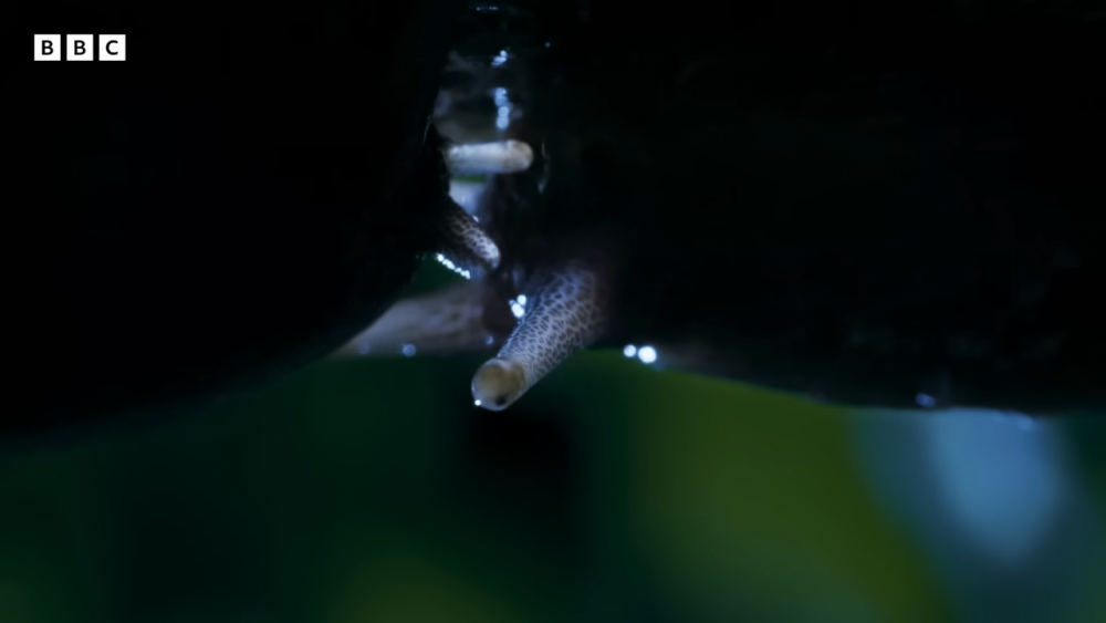 서로의 야추를 꽈배기처럼 만든다음 정자를 교환한다.
