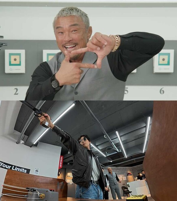 또 박지훈과 유수빈은 오는 25일 공개되는 ‘약한영웅 Class 2’ 홍보 기회를 얻기 위해 추성훈, 이창호와 공기 권총으로 사격 대결까지 나서 이목을 집중시켰다. ‘미필자’ 라인인 박지훈과 추성훈, ‘군필자’ 라인인 유수빈과 이창호가 각각 대결을 펼쳐, 박지훈-유수빈이 더 높은 합산 사격 점수를 얻을 경우 드라마 홍보 기회를 주기로 한 것. 네 남자의 승부욕을 폭발시킨 사격 대결 결과, 아슬아슬하게 작품을 홍보할 수 있게 된 박지훈과 유수빈은 안도의 한숨을 쉬고는 열정적으로 작품과 캐릭터 소개에 나서 훈훈함을 자아냈다.