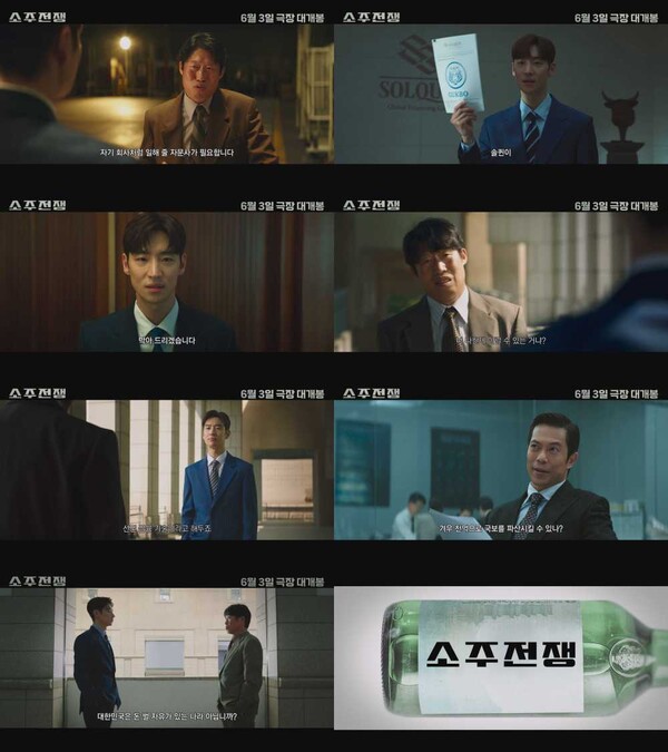 영화 ‘소주전쟁’은 1997년 IMF 외환위기, 소주 회사가 곧 인생인 재무이사 종록과 오로지 성과만 추구하는 글로벌 투자사 직원 인범이 대한민국 국민 소주의 운명을 걸고 맞서는 이야기로, 오는 6월 3일(화) 전국 극장에서 만나볼 수 있다.